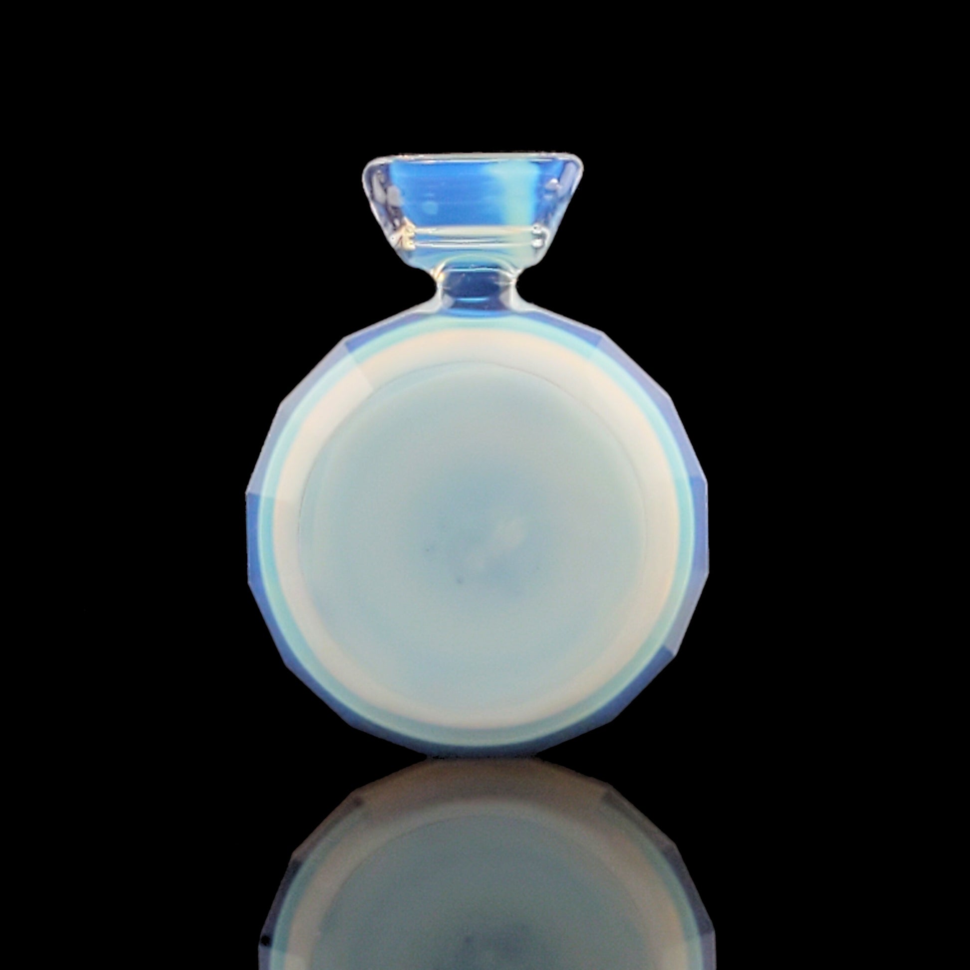 This faceted moon rock pendant was made to highlight the juxtaposition of machinery and nature. The natural looking, uneven crater texture of the moon rock right next to the faceted molten aura moonstone rim has a unnatural look to it that I personally love.