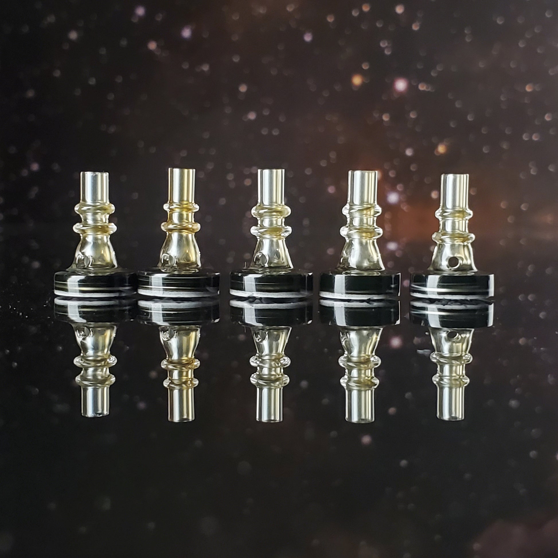 These full moon Joystick caps are for the 3D XL Chambers. They are made with molten aura electrum. The moon cab is solid electrum and the hollow section is thined down with clear to give it that nice translucency.
