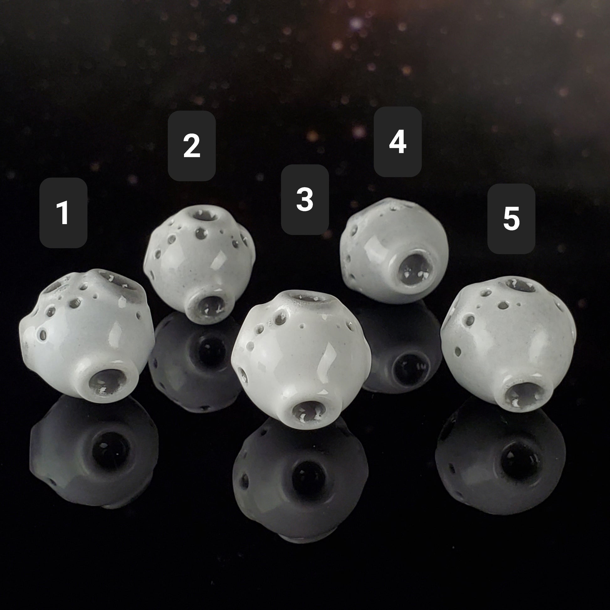 These handcrafted, glass moon rocks work perfectly as slerper caps.