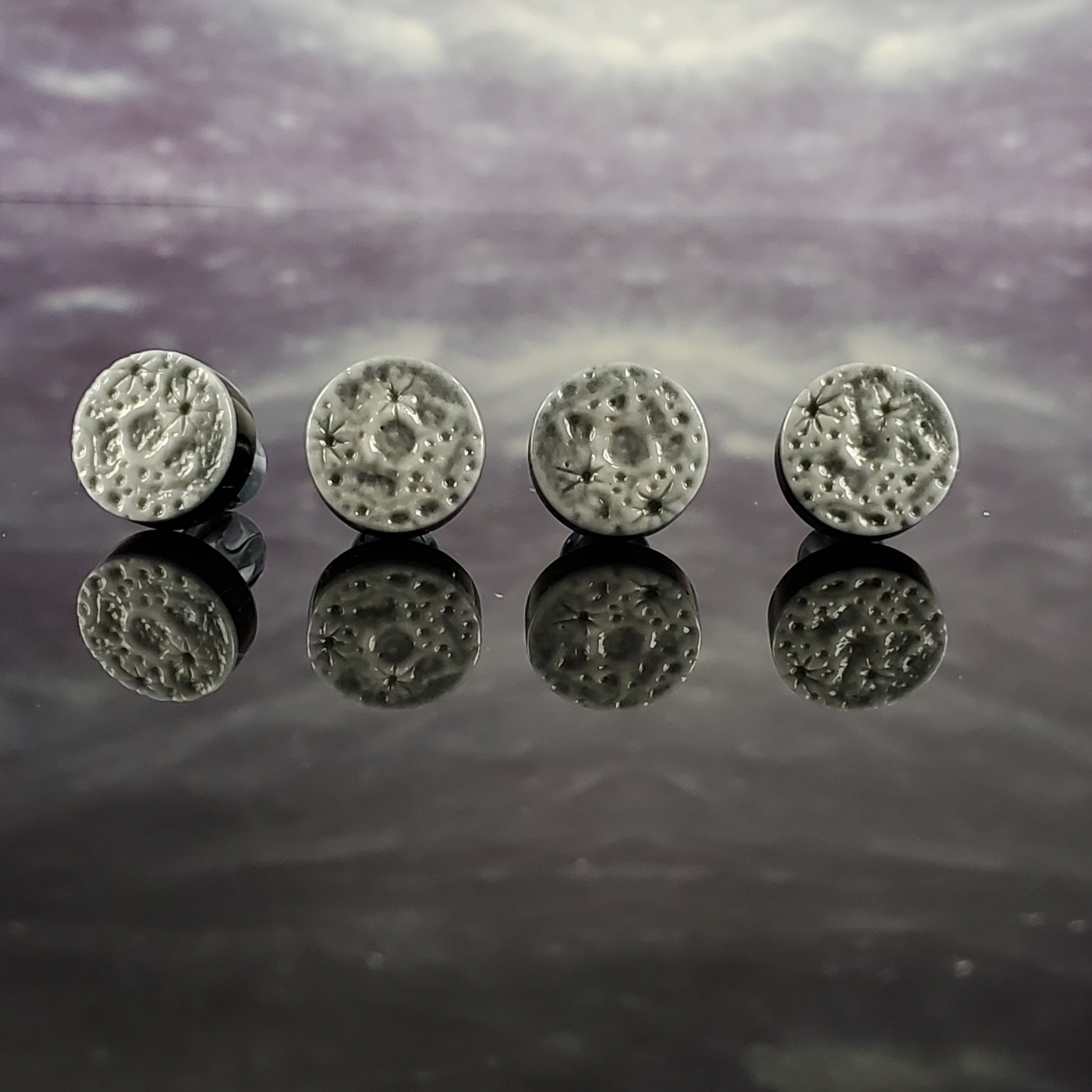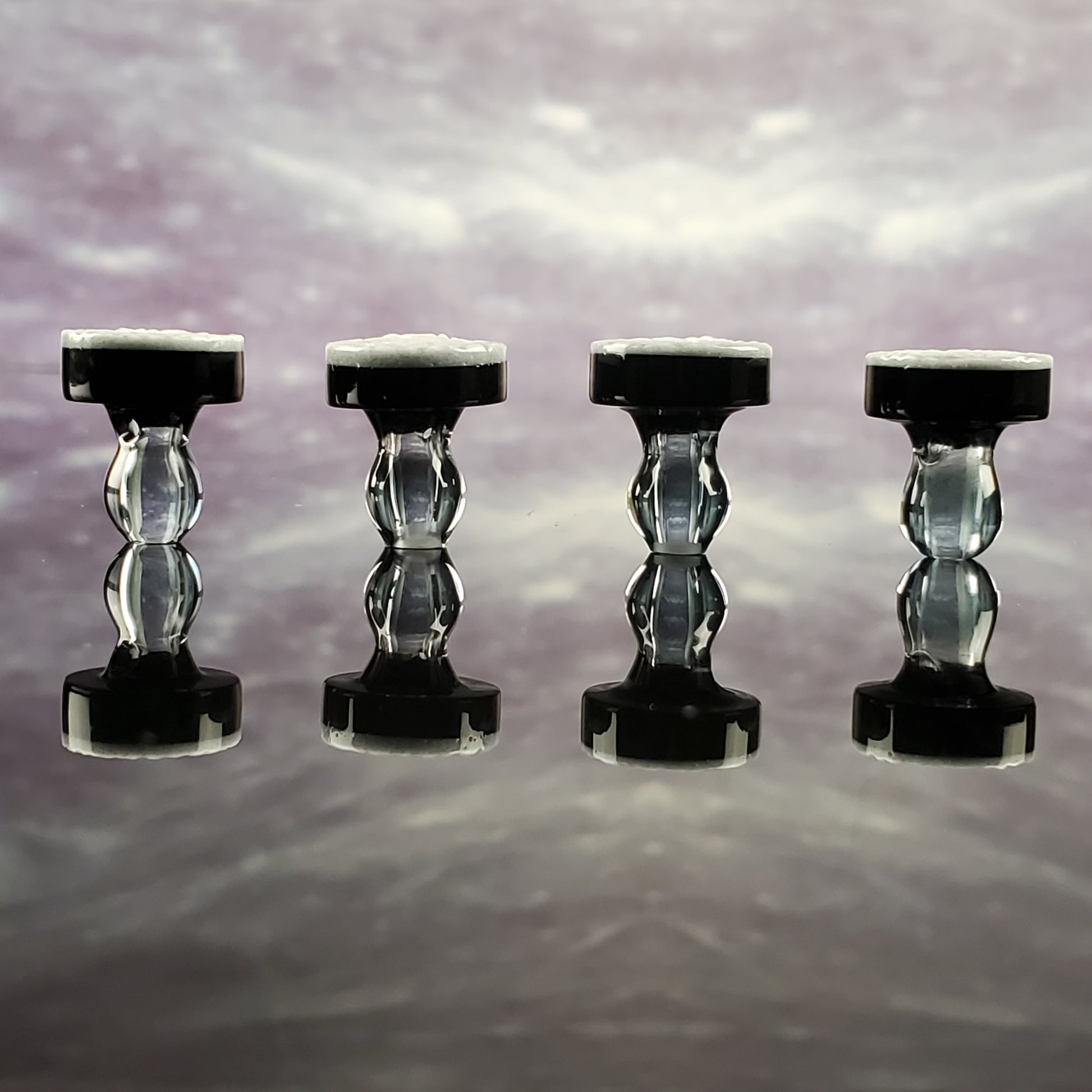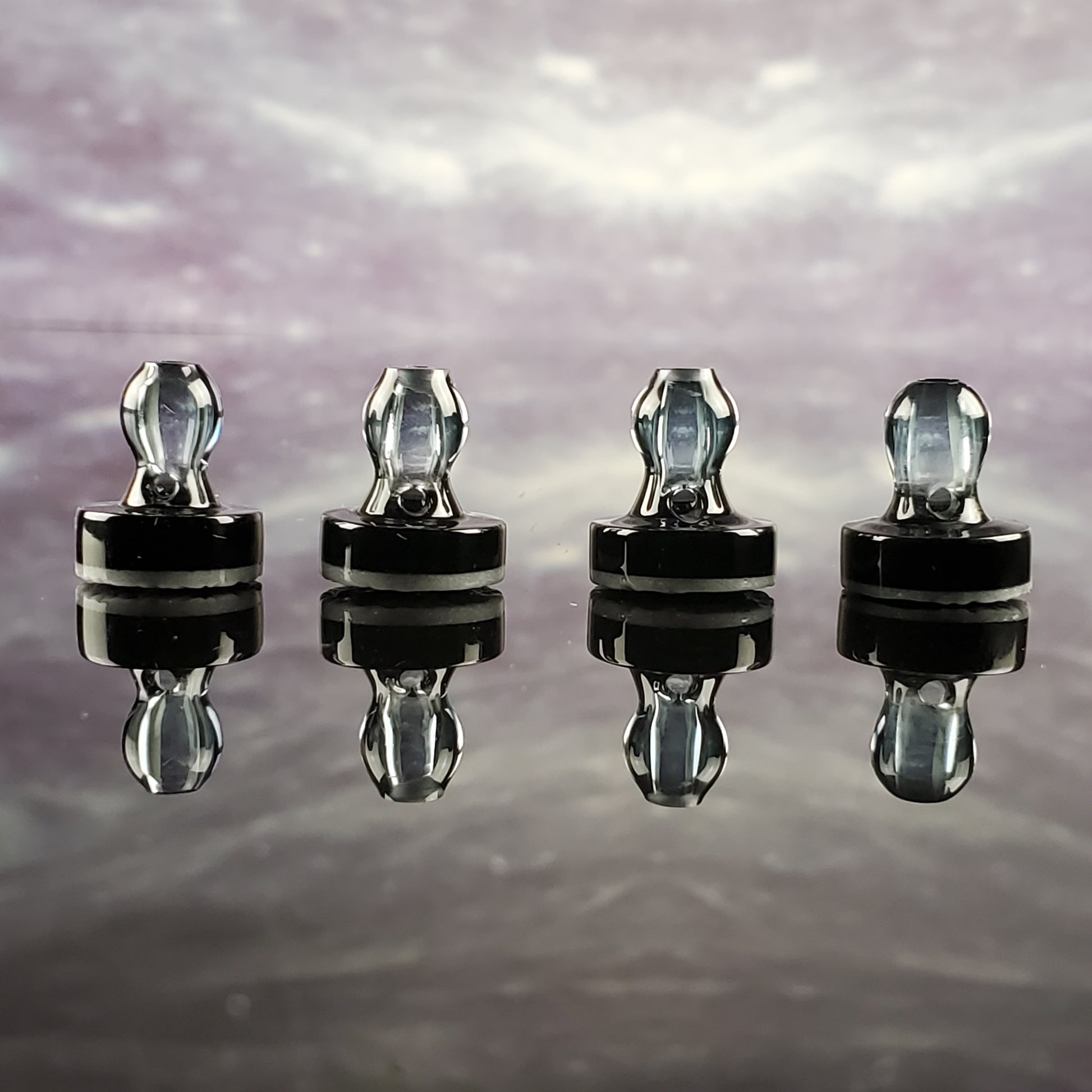 These full moon proxy caps are made with black violet. The moon cab is solid black and the hallow section is thin down with clear to give it that nice translucency.